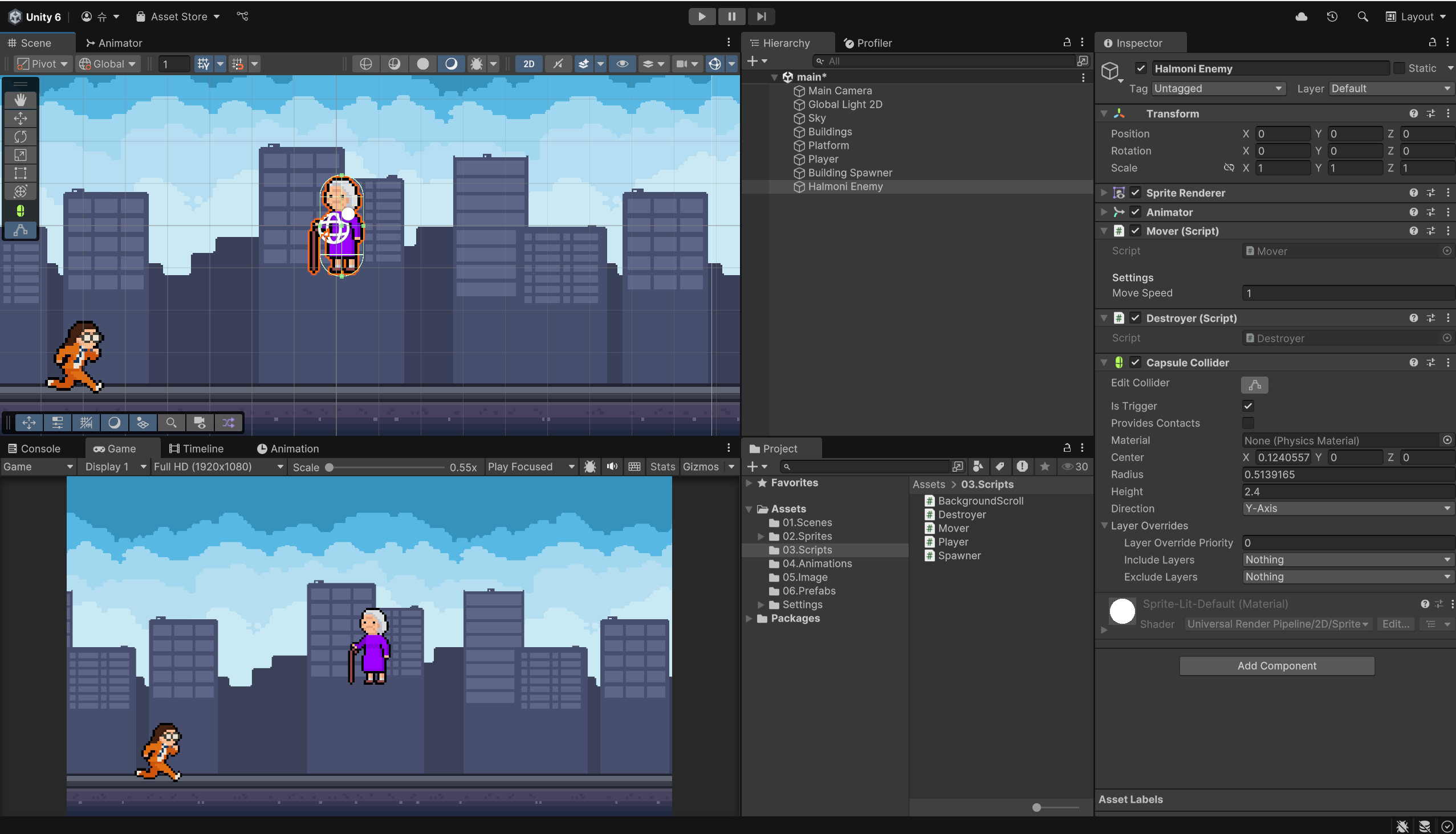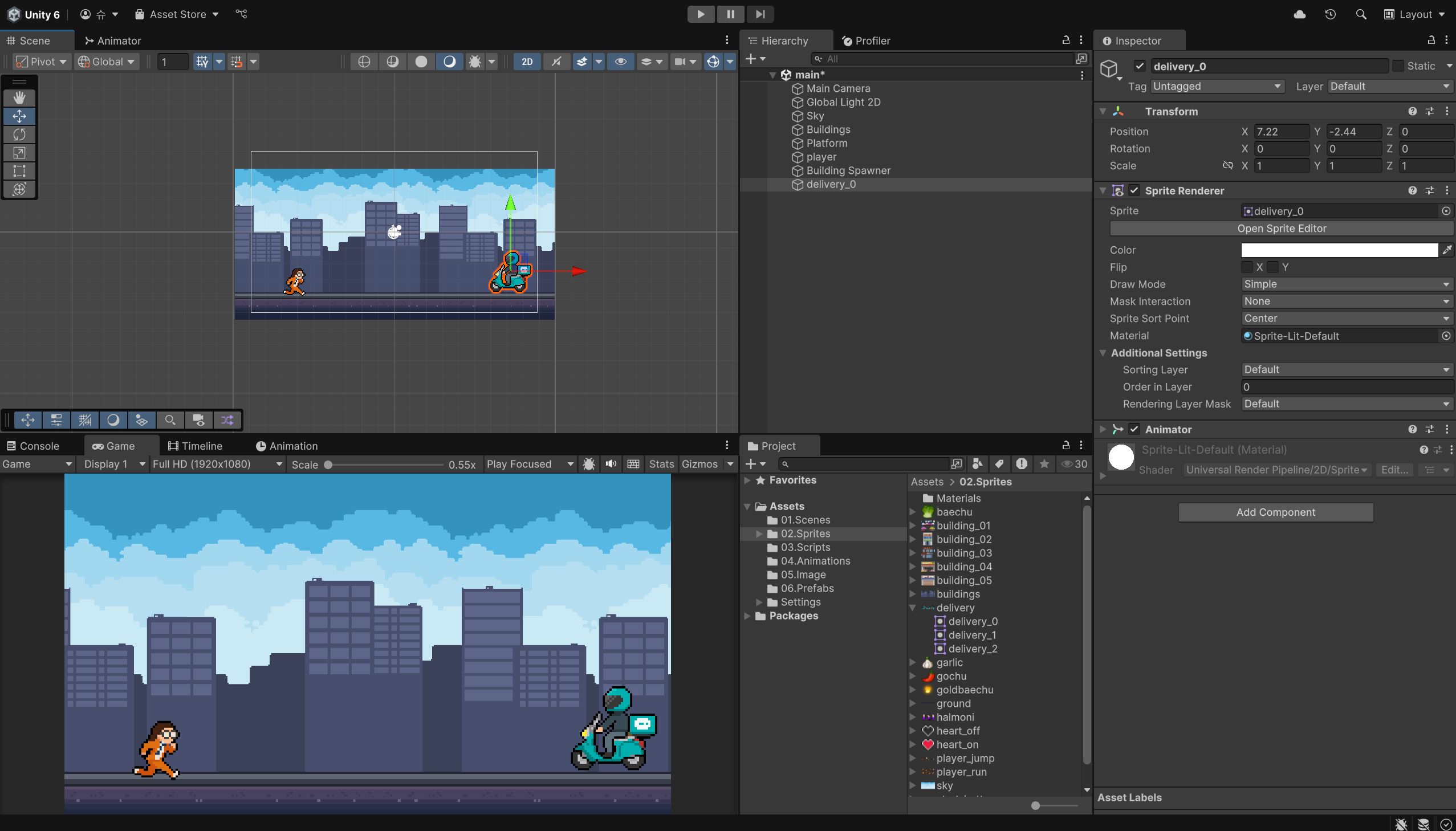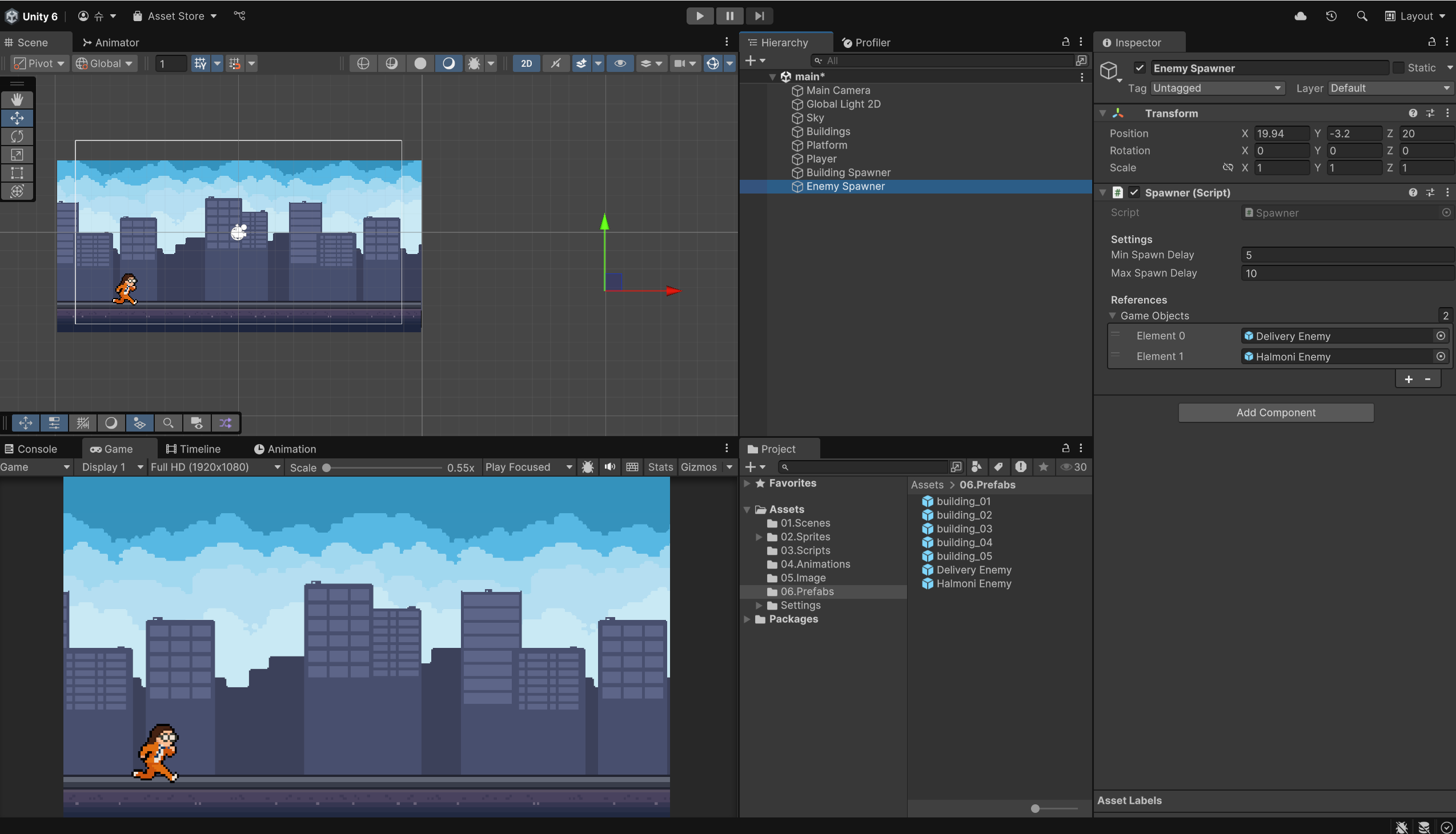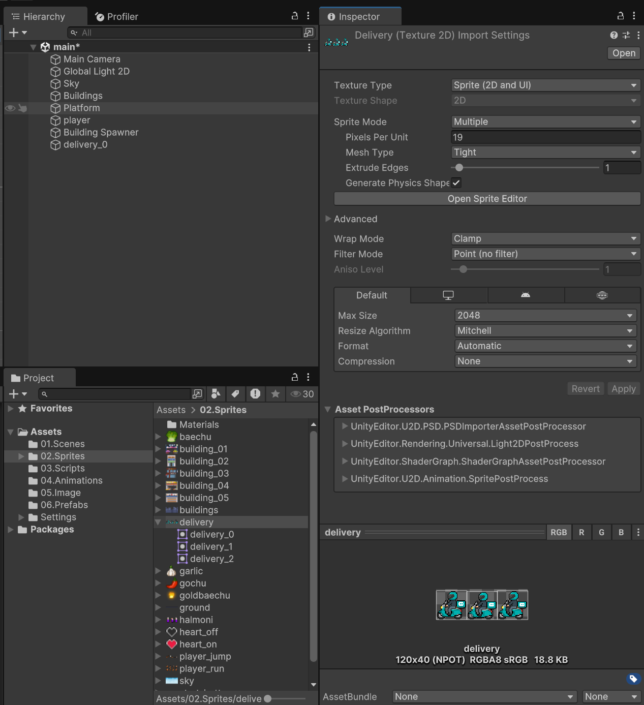 - 적 장애물을 만들기 위해서 스프라이트 이미지를 애니메이션으로 만들어줍니다.